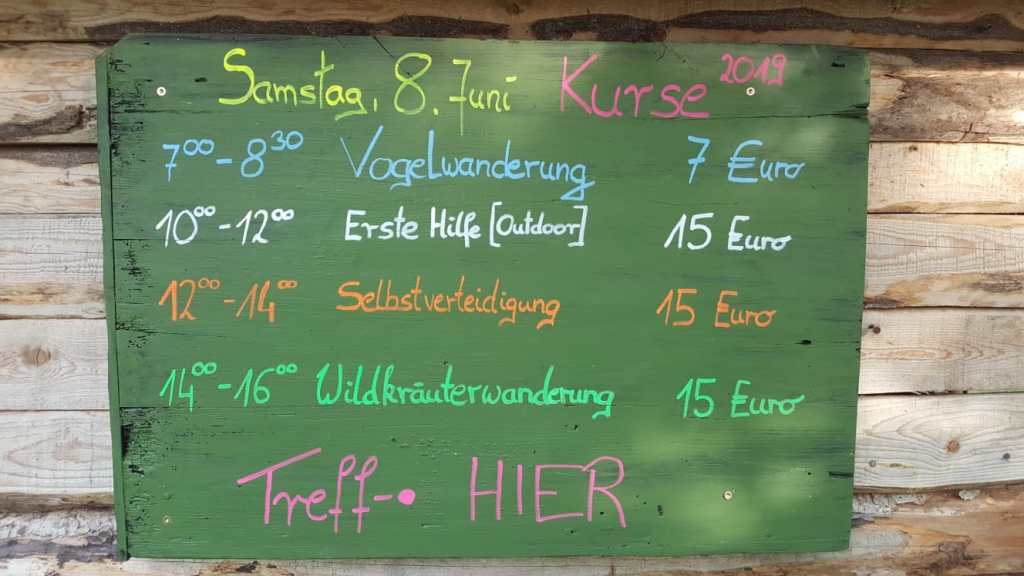 – Es herrscht Selbtsversorgung – vor Ort gibt es kein Trinkwasser – das müsst ihr bitte selbst mitbringen. Natürlich könnt ihr gern großzügig Leckereien oder Testenswertes mitbringen und miteinander teilen. In Berga (3 Minuten Fahrtweg mit dem Auto) könnt ihr einkaufen.