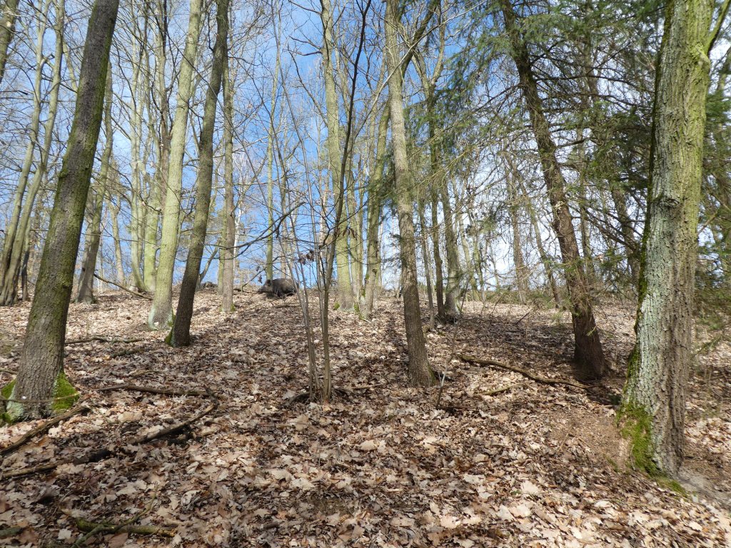 Zufallsfoto mit Eberhard – die Schweine sind es nicht mehr gewohnt, dass die Wege frequentiert werden. Es gab an dem Tag gleich zwei recht nahe Sau-Kontakte 🙂