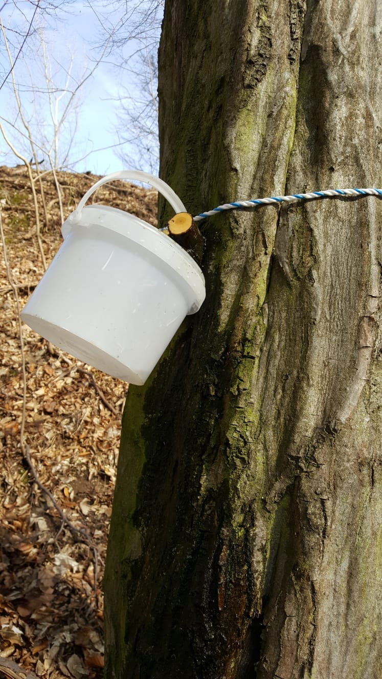 Wie viele Pflanzen ziehen auch die Weiß-/Hainbuchen gerade viel Wasser aus dem Boden in ihre Knospen und Zweige. Aus kleinen Wunden und Astabschnitten dringen in wenigen Stunden mehrere Liter Wasser aus. Das ist recht geschmacksneutral, fühlt sich aber durch die feine Filterung durchs Holz arg weich an.