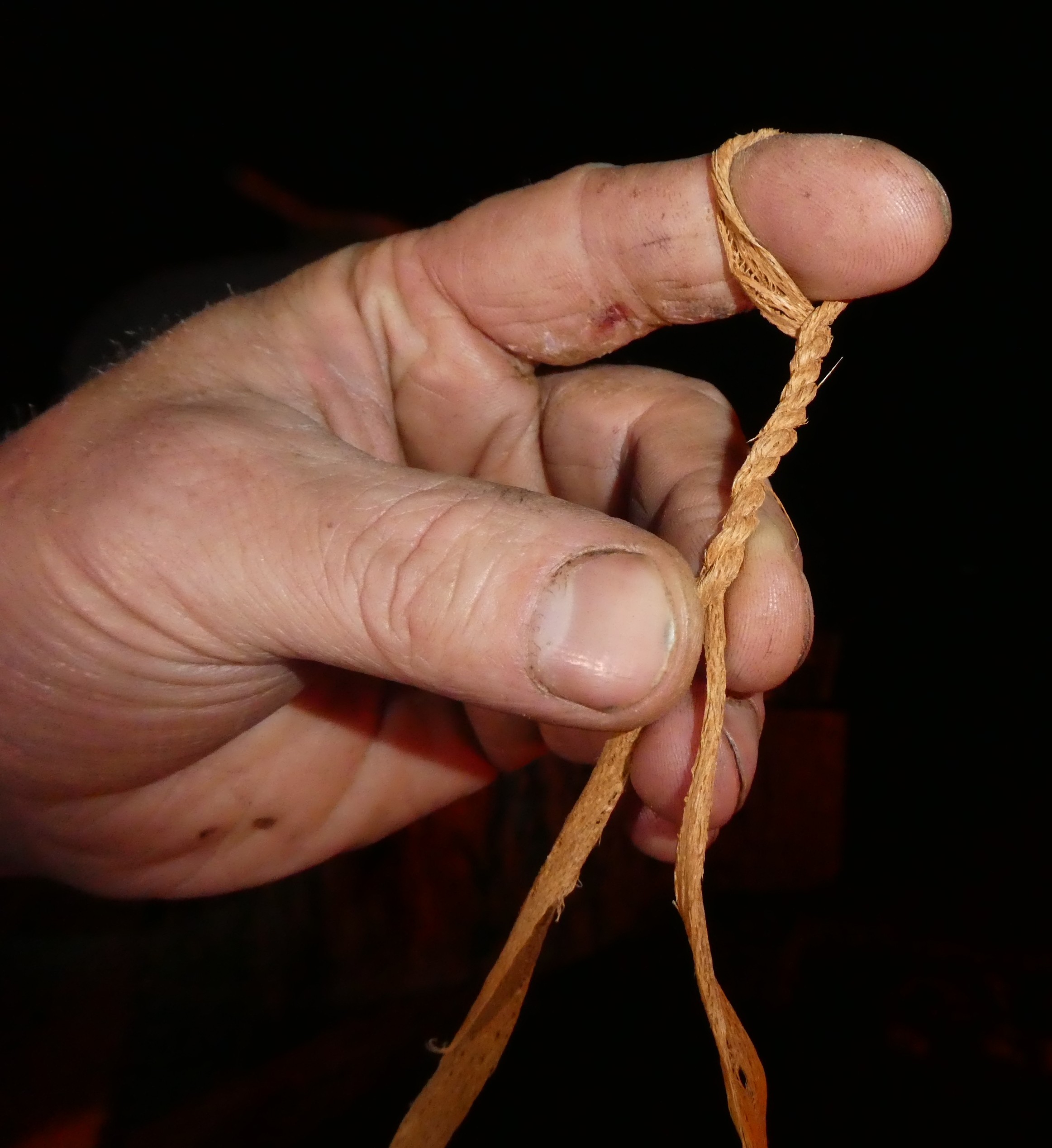 Alles was jetzt noch an Wurzelwerk rausguckt, wird abgeschnitten und wer hat und kann verklebt die Wurzel-Enden mit Birkenpech, damit sich die Wicklung nicht wieder lockert.