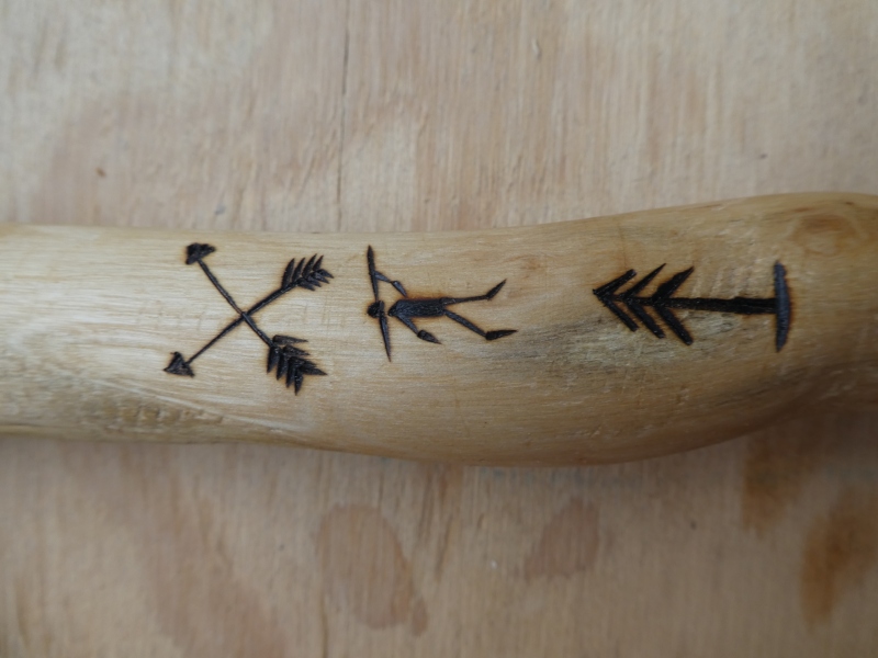 Die aus Lindenbast gedrehte Schnur dient als griffige Wicklung und Brandzeichen geben die individuelle Note.