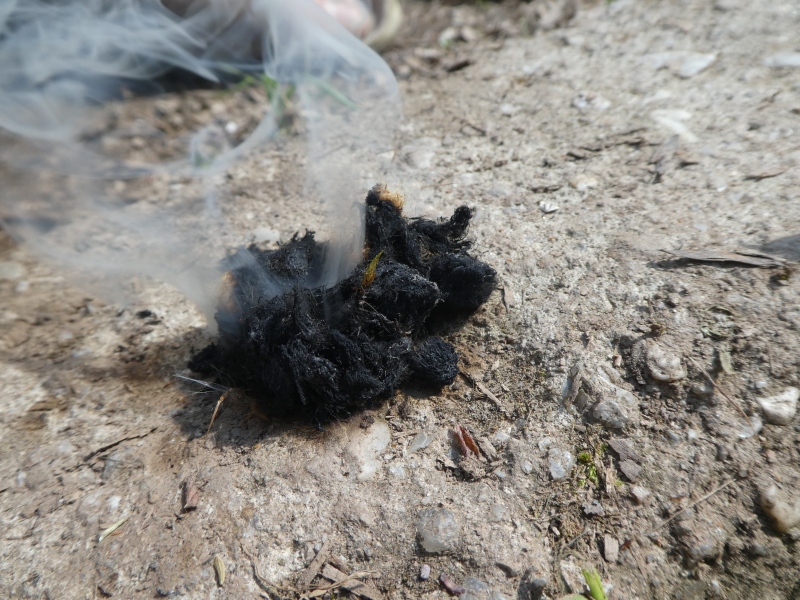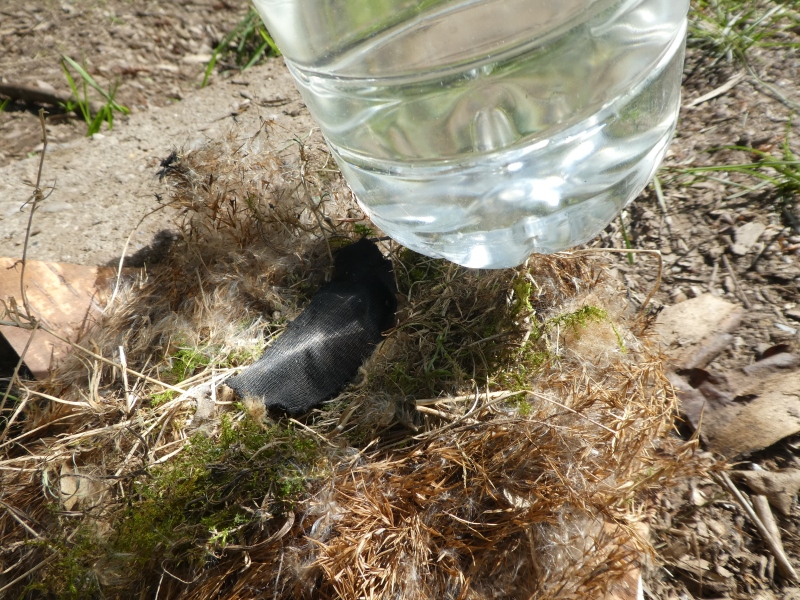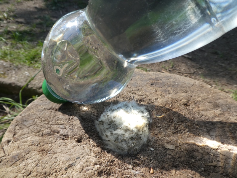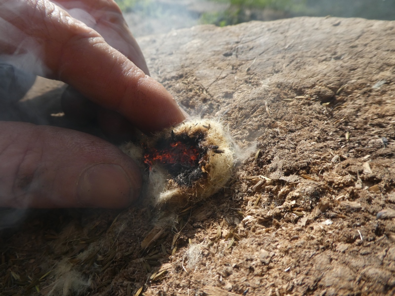 Feuer aus Samen entfachen mit Zündstahl und Wasserflasche