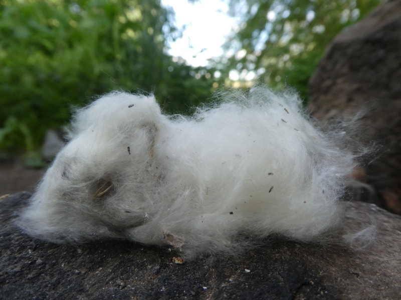 Weidensamen fallen hier am 1. Juni am Elsterufer massenhaft in weißen Flöckchen vom Himmel.