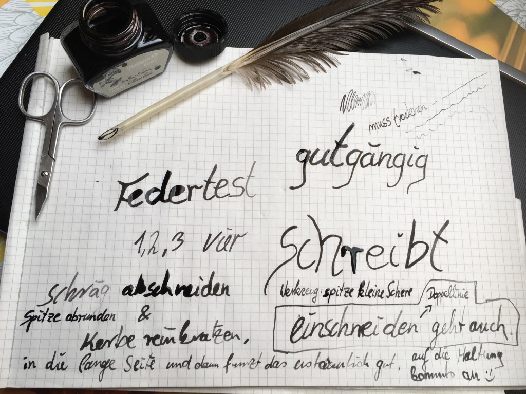 Ab ins Tintenfass, gut abtupfen und losschreiben 🙂 Werkzeug: spitzes Messer