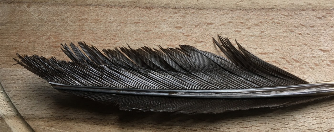 Und es empfiehlt sich für Echtfedern [um nicht versehentlich der Wilderei zu fröhnen] die Hinterlassenschaften von sich rupfendem Hausfedervieh zu nutzen.