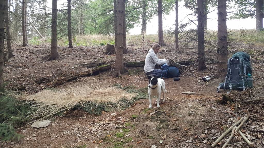 Nach Wünschendorf haben wir wieder steile Wege erklommen und folgten der Elster nun in Richtung Süden. Zwischen dem Silberberg und Clodra haben wir uns zur Dämmerung ein Nachtlager am Wegesrand gesucht. Entstanden ist ein Bett aus Reißig und Gras, das sehr bequem gewesen ist. Nur der helle Vollmond hat den Schlaf der Foxy etwas gestört.