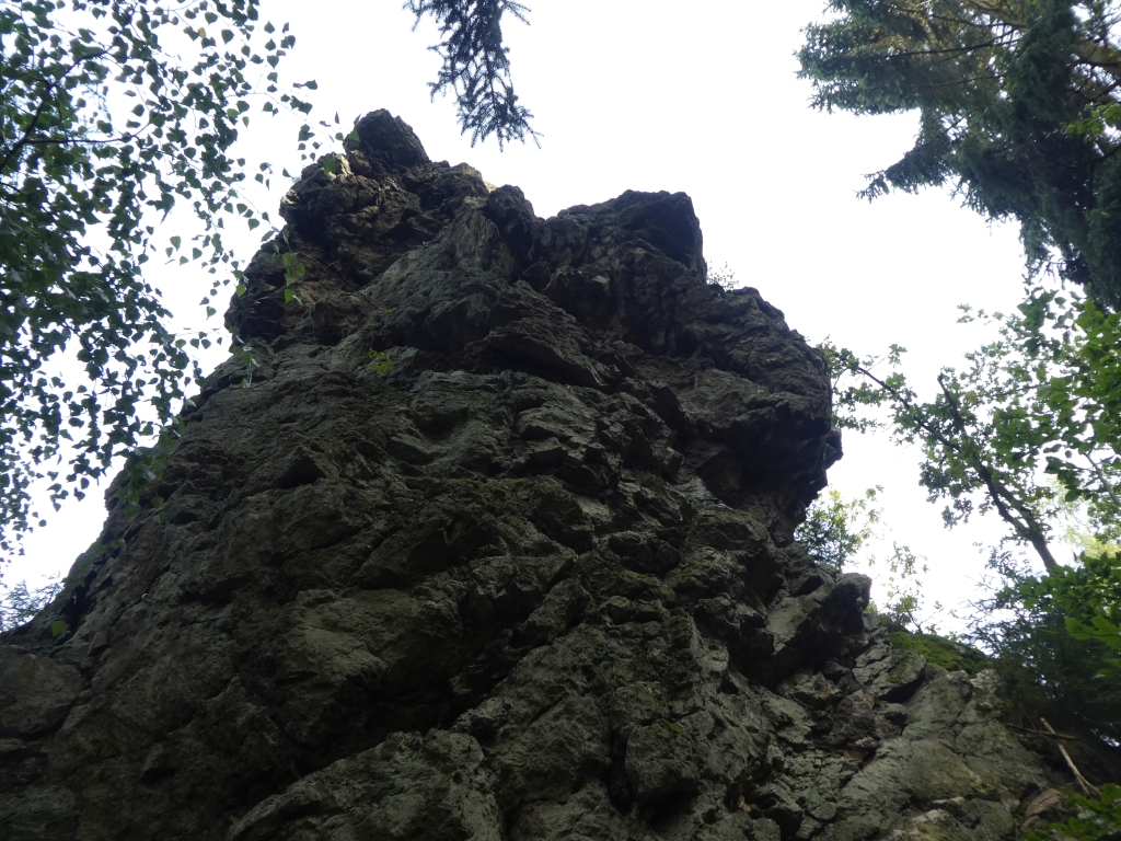 Nahe der Lehnamühle gibts einen Earthcache zum Phyllitschieferaufbruch, der sich um diesen mächtigen Schieferfelsen und die Geologie dahinter dreht.