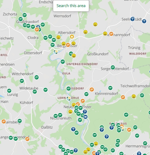Ganz neu war uns dieser Ort nicht; hier haben wir schonmal im Moosbett übernachtet. Die Rüßburg sieht man schön auf der Karte, da wo die Weiße Elster einen großen Bogen zieht.