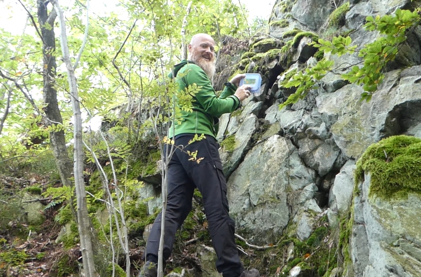 Entlang des gesamten Elsterperlenweges gibt es viele Einblicke direkt am Weg in schiefergeprägte Gesteinsformationen. Immer wieder liefert der Weg, gespickt mit gutgemachten Infotafeln, auch Ausblicke zwischen den gegenüberliegenden Aussichtspunkten, die wir passieren – an einigen Stellen haben uns dazu Geocaches interessante Informationen und Abstecher in verborgene Landschaften geliefert.