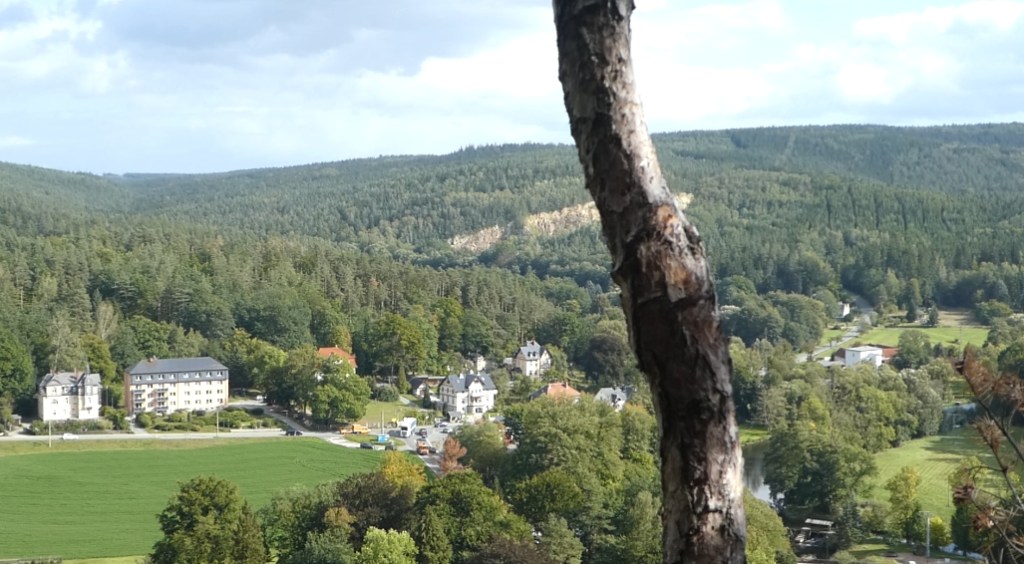 Andererseits bot der Weg kurz vor Greiz wieder schöne Wald- und Felslandschaften vorbei an der Teufelskanzel samt Ausblick aufs Weiße Kreuz und am Ida-Stein entlang.