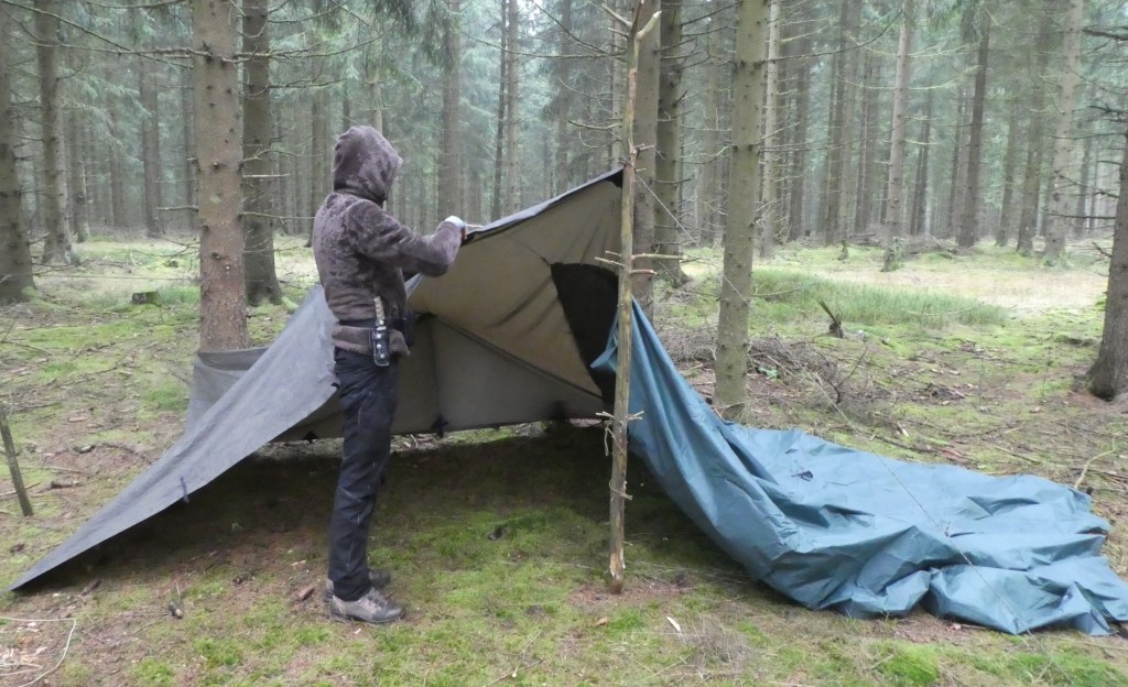 Anfangs zog ich mit einer Baumarktplane durch die Wälder – ja, das geht schon. Das reicht im Grunde auch. Allerdings hat diese Variante ihre Schwachpunkte. Die Baumarktplane ist wasserdicht und schützt vor Wind. Sie ist allerdings auch nach einiger Nutzung schnell hinüber. Ob defekte Ösen oder Risse im Gewebe: Nachhaltig ist das nicht.