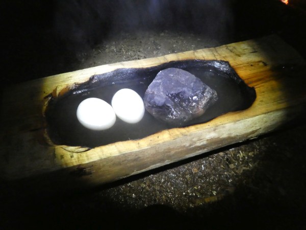 Stein(Zeit)Ei zuerst bedarf es einige Zeit, um „Kochtöpfe“ herzustellen. In der MännerVariante ist die Schale ausgebrannt mit Hilfe von guter Glut und bushcraft-Zange. Die FuxSchnitzVersion entsteht aus Weide vom ElsterCamp unter Zuhilfenahme von Schnitzhilfen von derb bis fein. Dann sind handliche Steine in der Glut lange heiß geworden und dienten als Tauchsieder für den Eierkochtopf.... Continue Reading →